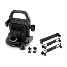 It has it all. Master power switch, quick-connect SAE power cables, large handle, multiple ¼”-20 mounting options for accessories, two rod holders, cable and transducer management, and a battery cover.