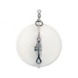 The special round shape and resulting multi-directional feature sets the Dipsy Diver® apart from all other divers and planers. A shift left or right, as indicated on the base plate, will cause the diver to track to port or starboard, allowing for large spreads of lures to be fished from a single boat. You’ll cover more water when the Dipsy Divers are deployed. The adjustable trip mechanism can be set specifically for various lure sizes and the size of target fish. Four sizes of Dipsy Divers are available, with dive depths of up to 20, 35, 50 and 100 feet. See our Tech Report: Dipsy Diver, The Directional Diver and Tech Report #15: Trolling Spoons for Freshwater Salmon, Striped Bass, Trout.
