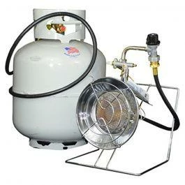 Mr. Heater is the Original Tank Top heater. Assembled in Cleveland, Ohio, this radiant 10,000 – 15,000 BTU Liquid Propane Tank Top heater-cooker is the perfect solution for heating or cooking when out of doors. This heater is constructed with high quality chrome and stainless steel components to bring you reliable heating for warmth or cooking when on the go. With its adjustable high-medium-low regulator and integrated stand, this unit is easy to use with refillable or disposable gas cylinders.