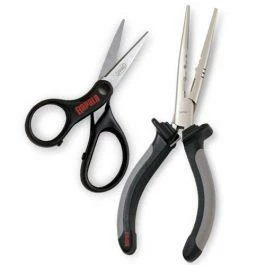 Pliers & Super Line Scissors Combo features the Rapala Fisherman’s Pliers, designed for years of reliable service, they are made of durable carbon steel with a nickel plated finish. Co-molded grips for comfort with a double leaf spring for ease of use and convenience. Split shot crimper, Rapala lure tuning tool and light duty side cutters are also featured plus the Super Line Scissors that feature sharp serrated cutting edge and oversized finger and thumb holes, these scissors actually grip and hold braided line for easy non-slip cutting.